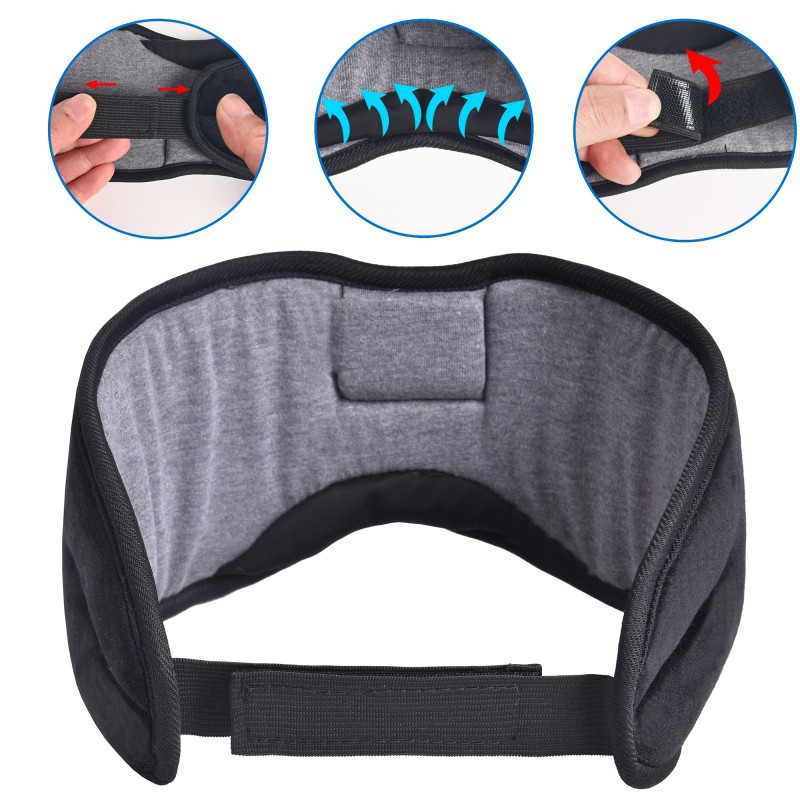 탈착식 및 빨 수 :면 검은 색 중앙 블루투스 아이 마스크의 본체는 분리 가능하며 청소하기 쉽고 위생적입니다.